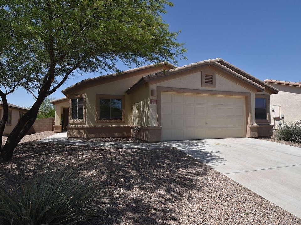 Beautiful Gladden Farms home in Marana. Popular great room plan with 4 BR, 2 BA, 2.5 car garage. Tile flooring in kitchen, dining area, laundry & baths. 2'' wood blinds throughout. Split bedroom plan with master bedroom away from guest bedrooms. 4th bedroom has a double door entry off the great room - could be used as a den/office. Master bedroom has large walk-in closet. Wide 2.5 car garage provides extra space for storage. Large yard with covered patio. Enjoy all that Gladden Farms has to offer including walking paths and a neighborhood park located just a few houses down the street. 1 year minimum lease. Non-smoking home. $45 application fee per adult. Subject to credit approval. Renters insurance required. Call listing agent for additional information and pet policy.