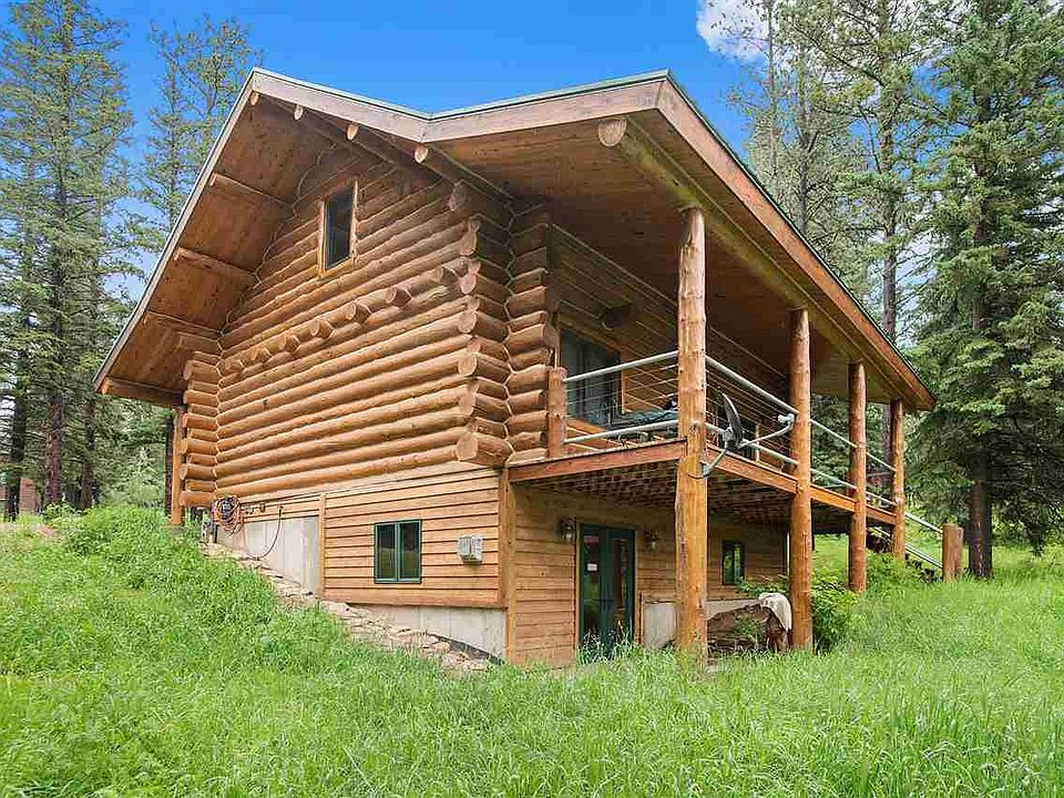 A well maintained custom log home built by Jorgensen Log Homes, located at Terry Peak Ski Area! This log home has open beams and a comfortable open floor plan offering 3 bedrooms and 2 1/2 baths. Nice views are enjoyed from the covered decks and patios that are on the front and back of the home. As you walk through the custom front door into the kitchen you will see all new appliances and countertops. In the living room you will find high vaulted ceilings and an efficient gas fireplace with garden doors leading to a large covered redwood deck. Unique features to include a custom cedar wet bar, antique style copper ceiling tile, blown glass light fixtures, exposed chinking and cabin style railing. Upper level features an open loft-style suite with private 1/2 bath. Downstairs you will enjoy the comfort of the warm gas fireplace and walk out access through the French doors to the patio.