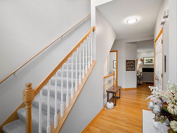Immaculate and spacious, this 4-bed, 4-bath end-unit townhome in Trout Brook Farms truly has it all! The kitchen shines with white cabinetry, a gray center island, granite countertops, stainless steel appliances w/gas stove, and hardwood floors. Upgraded lighting adds a modern touch. The open main level flows into the dining area and out to a private deck overlooking peaceful, association land—a protected wildlife buffer zone of wetlands and trees. Upstairs you'll find 3 beds, laundry, and a serene primary suite with walk-in closet, jetted tub, dual sinks, and separate shower. The finished lower level adds a cozy family room, 4th bedroom, and ¾ bath—perfect for guests or a home office. Custom plantation shutters throughout offer elegance and privacy. Connected to miles of trails and walking paths, this home blends comfort, style, and convenience. Don’t miss your chance—schedule a showing today!