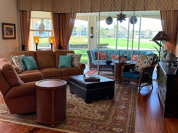 LOCATION! LOCATION! LOCATION! Highly sought after Mariposa in Gulf Harbour Yacht & Country Club. Ground level units with golf/lake view rarely come on the market! Great location with view of the 15th green, 16th fairway and lake located on the ground level (no stairs to climb) directly across from pool/spa (very social atmosphere) and grill area. Great room floor plan offers 3 bedrooms and 2 full baths, Kitchen with new appliances in 2018, breakfast nook and walk-in pantry, Formal Dining area, Indoor/Outdoor living is created by opening 3 glass sliders to large screened lanai with separate dining and seating area. MBR is spacious with large walk-in closet, two linen closets, double sink vanity, large walk-in shower and private commode room. Laundry room and spacious two car garage with shelving round out this amazing unit. Light and bright, wood cabinetry, Solid surface counters, Plantation shutters & Duets sun shades, Electric storm shutters on tiled lanai, Upgraded fans & lighting, Crown Molding and hardwood and tile flooring. New roofs Fall 2020. Furniture and Golf Cart negotiable, like new Move In condition. We are in the process of building a home close by and are looking for someone who is willing to sign a purchase agreement now with closing in Jan 2022 in time for the season. Whether you are looking for a retirement home or seasonal vacation spot Mariposa is a perfect option. Please no agent marketing calls; however , we would be happy to offer you a 2.5% commission when you bring us a buyer. Please call 757-373-1133 to schedule an appointment to see this beautiful condo. This unit won’t last long. Approximately 5 units in Mariposa have sold in the last 60 days within days to weeks of going on the market.