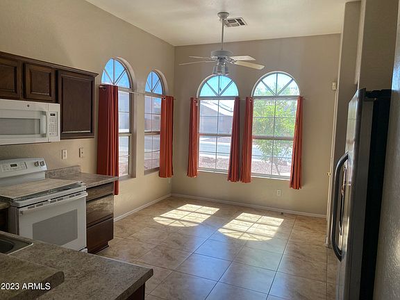 Welcome to this well-cared for home just minutes from the Cardinals Stadium, Desert Diamond Casino, golf courses, Westgate shopping and entertainment, as well as the new Crystal Lagoons Island Resort. Great room floor plan. Tile through out except bedrooms. Brand new carpet in bedrooms. Breakfast bar, eat in Kitchen, and brand new dish washer. Neutral colors through out. Vaulted ceilings. Covered patio with fenced pool. Complete with Refrigerator, Washer & Dryer. Well taken care of. A must see.