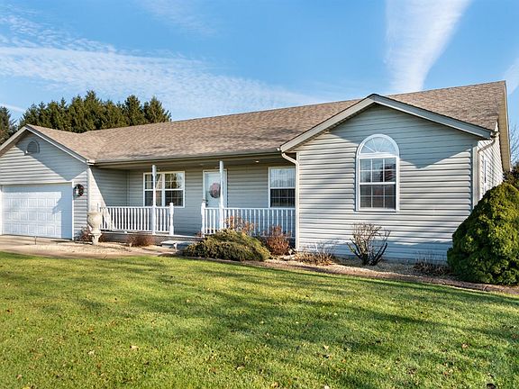 Neat & Clean 3 Bedroom, 2.5 Bath Ranch in a country setting. Nice size Living Room w/new carpet & guest coat closet. Dining Room w/Hardwood flooring. Nice size Kitchen w/ newer stainless appliances, 2 tier breakfast bar & hardwood flooring. Spacious Laundry Room w/upper & base cabinetry, washer & dryer stay & laundry tub. 1/2 Bath conveniently located at back door plus 2 more Baths (1 w/whirlpool tub). Nice size BR's and all w/ new carpet.Master offers a walk in closet,Bath w/ double sink vanity, trey ceilingNew furnace, a/c & water heater in 2017. New roof approx. 2001, Wired generator. Storage shed with electric & concrete floor. Concrete border (maintenance free) landscaping plus a Patio. Huge backyard. Generac generator. In ground sprinkler system w/separate well. 18 x 11 Sun Room w/heat, air and lots of windows for enjoying the view & natural light. Meticulously maintained and move-in ready! Be sure and checkout the extra photos and call for an appointment.