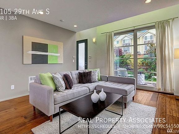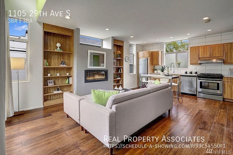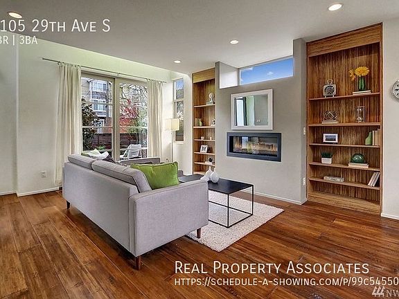 - Professionally Managed by Real Property Associates - Fabulous townhouse located moments away from downtown Seattle - Modern kitchen with a gas stove - Bright living room with large windows and private patio - Mounted gas fireplace on living room wall! - Lofted master bedroom with ample natural light - Amazing location, minutes from freeways, buses, shopping, parks and more