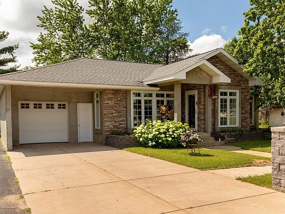 Tastefully designed and richly appointed estate on landscaped grounds, conveniently located just minutes to all that Staples has to offer. The home features open concept main floor living, large primary bedroom with private deck, stunning bathroom with tiled floor and walls, walk-in shower, deep circular tub, antique vanity, main floor laundry, full height gas fireplace, and a one stall attached garage. Scattered around the grounds are two more buildings - 36x26 three-stall garage, , and at the end of the "Yellow Brick Sidewalk" you can find the 24x22 shop, ideally suited for a home business or office. Additionally, there is a concrete pad with power and water hookups, potentially for RV parking or future storage building. The property is fenced on three sides with a nostalgic wire fence, along with a wooden privacy fence on the south end.