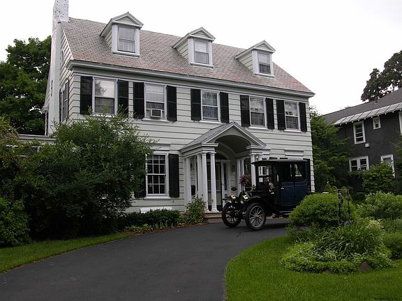 Oh what a fabulous opportunity! This true CH colonial in the GE Plot charms you with all the trimmings you hope to find in a traditional home: gorgeous woodwork, an elegant staircase w landing and window seat, French doors, back stairs, a butler's pantry, HW floors t/o, a classic enclosed porch with pillars, a lovely private yard with colorful perennials --and a state of the art brand new fully applianced kitchen! Circular drive. Updated, well maintained, new furnace, outstanding storage, three fully finished floors of living space, bright and airy--just a joy. Don't miss! Taxes have basic STAR.