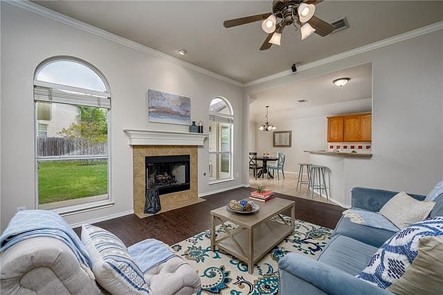 Charming single story home with an open floor plan in the highly desirable community of Forest Oaks. This home features high ceilings, fresh paint, new vinyl flooring, new fixtures, new SS appliances and wired for surround sound. Enjoy living in the master planned community - pool, playground, club house and trails. Spacious 4 bedroom, 2 full baths, 2 dining, open living area and plenty of storage. Perfectly manicured yard, private backyard, and patio. Minutes to shopping, dining, and entertainment.