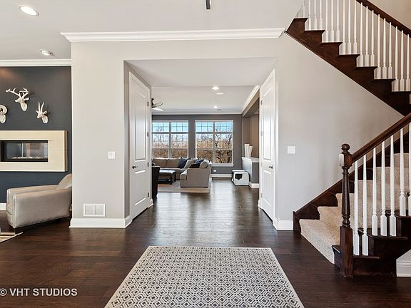 Chic and sophisticated living at its finest! From the moment you step into this elegant home, you are greeted with an open floor plan, wide planked hardwood flooring and sleek modern decorating and design. Formal living and dining rooms feature crown moldings and plantation shutters. Refined kitchen offers every amenity including Jenn Air appliances, beverage drawers, wine cooler, island with breakfast bar, butler's pantry and opens to the eating area with transom window and sliders to deck. Continue into the sun drenched family room with gas fireplace, a perfect gathering space. Office, powder and laundry rooms complete the first floor. Retreat to the second level and the comfort of your master bedroom suite with 10-foot tray ceilings, his & her walk-in closets and large luxury bath. In addition there are three spacious secondary bedrooms with walk-in closets and access to private baths. The finished walk-out lower level offers another level of amazing living space with game room, exercise area and ample storage space. The huge rec room features a wall of windows, wet bar with brushed granite counters and sliders to paver patio with private wooded views. Move right into this turnkey home offering maintenance free living in a gated community with Barrington schools!