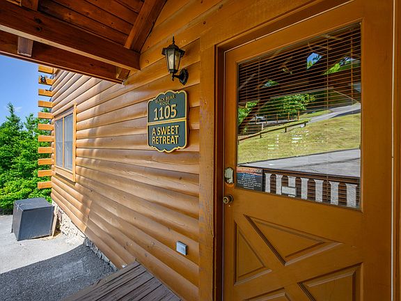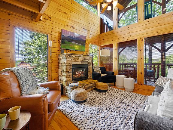 Welcome to “Sweet Retreat,” a beautifully appointed log cabin blending rustic charm with modern design, ideally located in the heart of Sevierville. This 2 bedroom cabin offers a versatile layout with a loft hideaway, multiple entertainment spaces, and serene nature views – perfect as a primary residence, second home, or investment opportunity. The main level features a spacious living room with soaring ceilings, hardwood floors, and a striking stone fireplace, flowing into a large, updated kitchen with modern appliances, generous counter space, and a farmhouse-style dining area. Each bedroom includes its own full bathroom, offering comfort and privacy, while the primary suite showcases a jetted Jacuzzi tub positioned beneath a wall of windows overlooking the natural surroundings. Upstairs, enjoy a dedicated game room with foosball and arcade games and access to a balcony with sweeping views. Outdoor living is highlighted by multiple balconies with lounge seating, rocking chairs, and a private hot tub – ideal for relaxing and enjoying the mountain air. Additional features include a stackable washer and dryer, abundant natural light throughout, and thoughtful finishes that create a warm, inviting atmosphere. Conveniently located minutes from Pigeon Forge attractions, shopping, dining, hiking, and outdoor recreation including Dollywood, The Island, and Ober Mountain Gatlinburg, with community amenities such as a shared outdoor pool and fire pit, this turnkey mountain retreat offers comfort, character, and exceptional proximity to everything Sevierville offers.