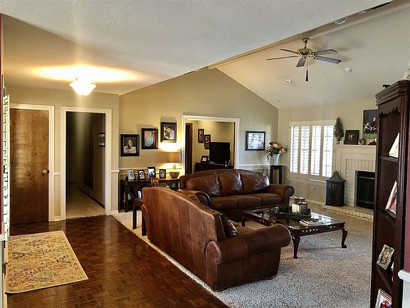 This beautiful home nestled amongst beautiful, mature trees is an absolute dream! The spacious kitchen boasts gorgeous wooden cabinetry, granite countertops, and a skylight right over the island, providing lots of natural light. Right off the kitchen is a utility room with space for your washer and dryer and pantry and access to the 2 car garage. This home also has a very large formal dining area as well as a large living room with a cozy woodburning fireplace that also has a gas insert. Off the main living area is a bonus room which can be used for a variety of ideas such as a sitting room, study, office, man cave, play room, etc. The wood coffered ceilings in this bonus room give it that elegant, yet, inviting feeling. The master ensuite resides at the end of the hallway, separate from the other rooms. There is also a half bath between the kitchen and formal dining for guests to use. The back yard is an entertainer's paradise! Complete with pergolas, patio space, landscaping, and a heated inground cement pool. The roof is new in 2020 with impact resistent shingles.