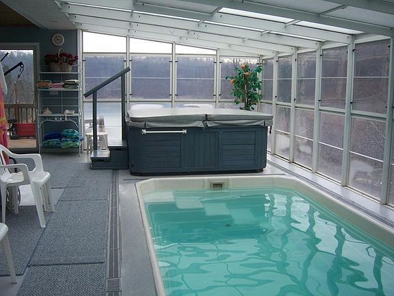 This property is geared to a large or multi family ownership and is also a very popular rental during boating season. A two bay dock with upper sun deck and 1 lift. 7 bed/7bath plus 2 sleeping rooms. Two kitchens- main and lower level, spa room with hot tub and resistance pool. Great views from main and ll lake view decks. Granite counter on main. Huge 2+ car garage with storageEfficiency Apt. above garage. Lots of parking for cars = trailers.