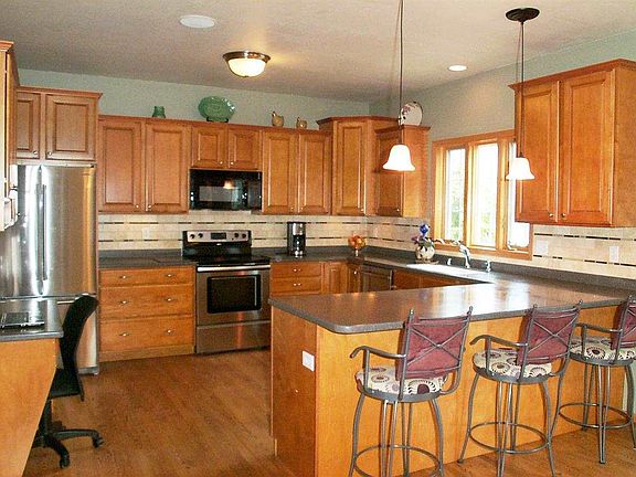 Beautiful 3117 sq/ft 2-story w/rich oak floors that grace the foyer, 1st flr office & extend into the lrg maple kitchen w/solid surface counters, custom tile & glass backsplash + stainless steel appls! Big great rm w/surround sound & gas f/p! 4 bdrms grouped together upstairs-Master features a huge walk-in closet w/custom organizers & jetted bath! Exposed L/L w/family rm, game rm & bath finished in '08. Deck & paver patio overlooks the well landscaped lot! 3 car garage, 1 year warranty & neighborhood pool!
