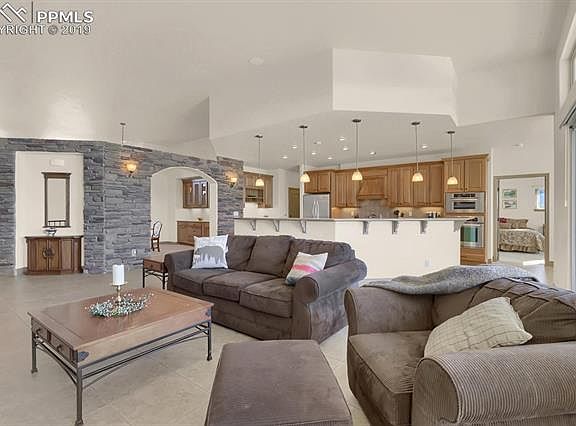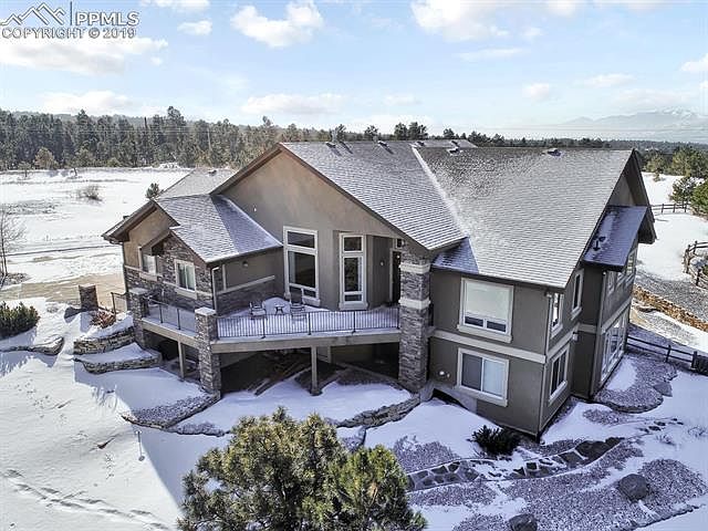 2 words-Elegant. Stunner! You'll be impressed with this 5 bed/5 bath/oversized 3 car garage ranch plan perfectly placed on a 2.5 acre lot. Pikes Peak and Front Range view to cherish from almost every spot. This is it! With just the right amount of space and "flow" to live proper and still feel at home. 12' ceilings on the main-elevated ceilings in the lower level-multiple walkout points from basement as well as the main level to enjoy the Colorado air and brilliant views from the covered balcony. Open concept kitchen ties in the smooth flow of the bright main level with its beautiful quartz counters and abundance of cabinetry. Plenty of space for your kitchen necessities. The island has a separate sink and plenty of prep room for your gatherings.