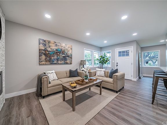 Here is your chance to own this turnkey home in the beautiful Santa Ana. Conveniently located near gyms, groceries, and Memorial Park. As you approach this cute home you will notice the custom LED waterfall, new garage door, and new double pane windows. Open the door and notice the new waterproof and scratch resistant laminate grey flooring, open floor plan, new baseboards, and new recessed lighting throughout the home. The open kitchen features bright white shaker cabinets, quartz countertops, bar top seating island and new appliances. The open living is customized with a stone fireplace perfect for those cold nights. Down the hall you will see the remodeled bathroom with modern grey tones. As soon as you walk into the backyard you will notice the large lot, huge mandarin tree, custom pergola patio and custom fire pit- perfect for entertaining! A must see for yourself!