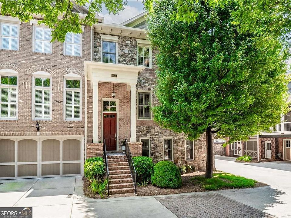 Beautiful Custom Brick End-Unit Townhome with Rare 3-Car Garage! This elegant traditional townhome stands out with FOUR porches-including two screened-in (one off the family room and one off the primary suite)-perfect for indoor/outdoor living. Exceptional craftsmanship throughout with custom plantation shutters, rounded wall edges, 12-inch trim, transom windows, and detailed millwork rarely seen today. The spacious main level is ideal for entertaining, featuring a dining room that easily seats 12+, highlighted by gorgeous moldings and a hand-painted mural signed by the artist. The gourmet kitchen boasts granite countertops, SubZero paneled refrigerator, Dacor appliances (including six burner gas range cooktop and warming drawer), Bosch dishwasher, and a walk-in pantry. An inviting eat-in area flows seamlessly into the family room, which showcases coffered ceilings and a cozy brick fireplace. Upstairs, the primary retreat impresses with a private screened porch, large balcony, spa-like bath with new tile flooring, double shower heads, and a custom walk-in closet. Two additional bedrooms offer custom closets, and the oversized laundry room includes built-in cabinetry and a sink. The finished terrace level serves perfectly as a teen or in-law suite with its own washer/dryer connection and full bath. A fully floored walk-up attic offers excellent storage or future finish potential. All this in an incredible central Perimeter location-just minutes from GA-400, I-285, and three MARTA stations!