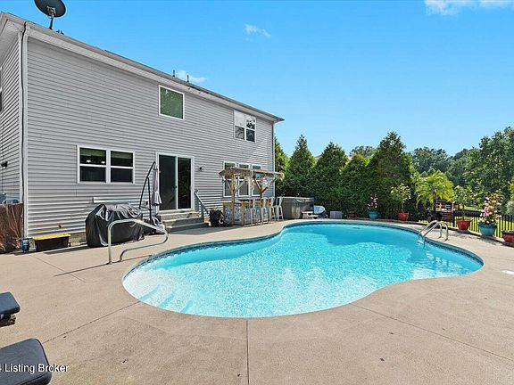 Welcome to this stunning craftsman style home in highly desired Oldham County! This home is beautifully updated and ready to impress! Relax on your covered front porch. As you enter, you will notice the beautiful dark flooring. The heart of the home is a spacious open concept featuring a gas fireplace and spacious modern kitchen, perfect for culinary enthusiasts and entertaining guests. Large center island and stainless steel appliances. Step outside to your own private oasis, featuring a large backyard with an in-ground saltwater pool, fire pit and a delightful tiki bar—ideal for summer gatherings and relaxation. Retreat upstairs to the expansive primary suite, offering a luxurious spa tub to unwind and large walk in closet. The second floor also offers two other spacious bedrooms, a full bathroom and convenient laundry room close to all of the bedrooms. The loft area could be a great office space or has the potential to be closed off to make a 4th bedroom! This home also includes an unfinished basement, which is roughed in for a third full bath and wet bar providing ample potential for customization and additional living space. This property seamlessly combines comfort, style, and entertainment. Don't miss the chance to make this exceptional house your new home. Schedule a viewing today and experience the charm and elegance firsthand!