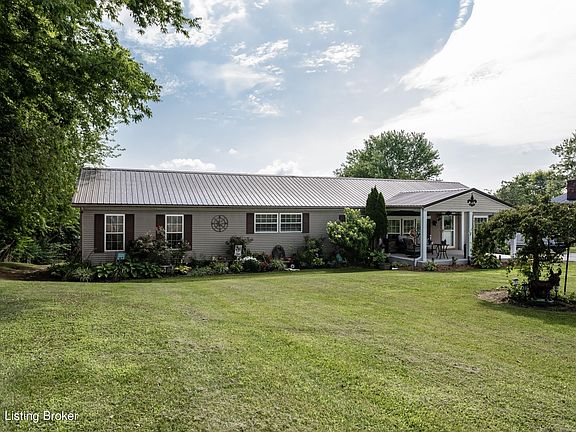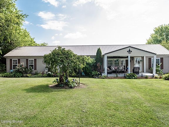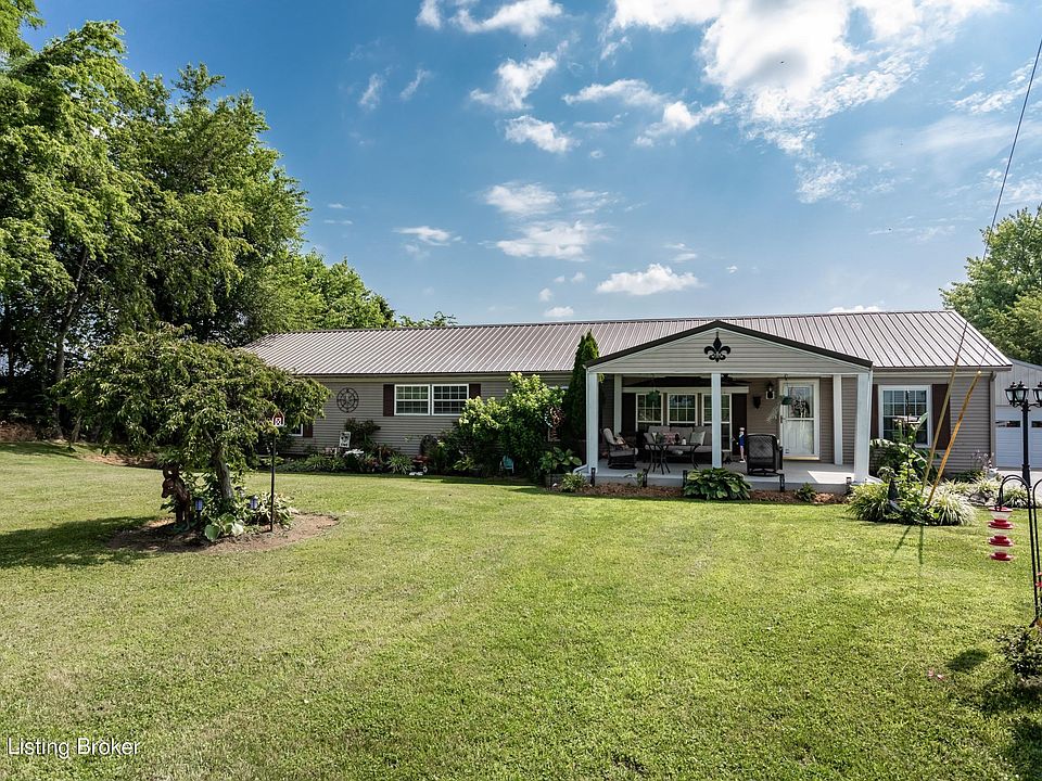 Beautifully updated four bedroom home in private country setting with a spacious detached garage and pool. Pride of ownership shines throughout this gorgeous home. Updates just completed in 2021 include a new concrete front porch, new carpet in the Primary Bedroom, new light fixtures, new Primary Bathroom shower insert, stainless countertops and new laminate kitchen countertops, new flooring, new vanities, new pool liner, new blinds throughout the home and fresh paint. New HVAC in 2020. The view is amazing from the covered back deck built in 2019 which also includes an outdoor stainless bar by the pool. The Living Room carpet was new in 2018, new roof in 2016 and new hot water heater in 2014. Excellent commute location to Louisville. Hurry to tour this move in ready home before SOLD!