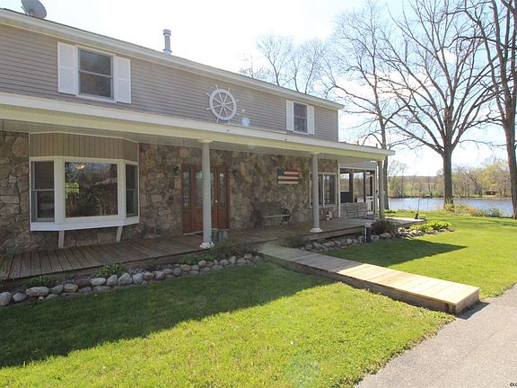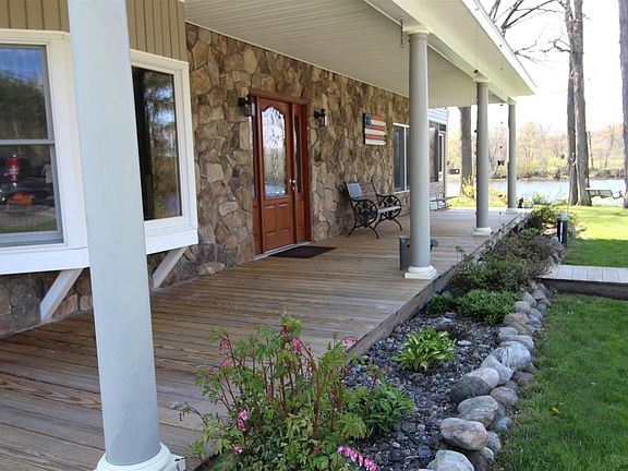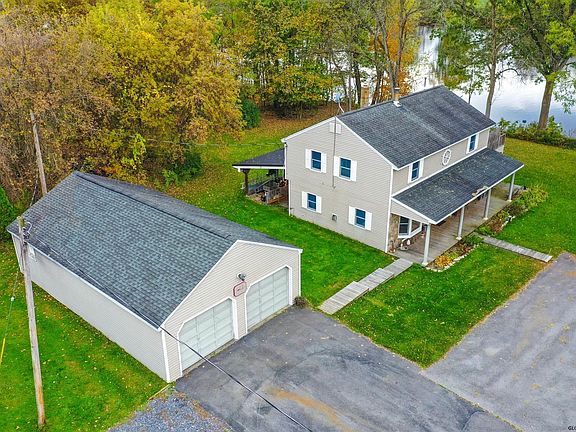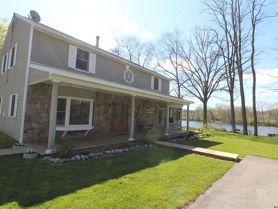 Hudson River Waterfront! Make a vacation paradise retreat your everyday life! 175' of river frontage with a private paved boat launch, dock and swim deck. 3.6 miles from Stillwater Bridge Rd. Beautiful updated Colonial on 1.4 acres, 3 bedrooms, 2 1/2 baths & custom spiral staircase. Enjoy your Master bedroom upper deck or drinks on the first floor screened-in porch overlooking the River. Gourmet Kitchen with granite countertops. Generator, full house fan, detached garage with finished heated wine making/party room. Huge Carport for boat storage. Views galore and 14 miles of boating between the locks or go through the locks and go to Montreal or NYC.