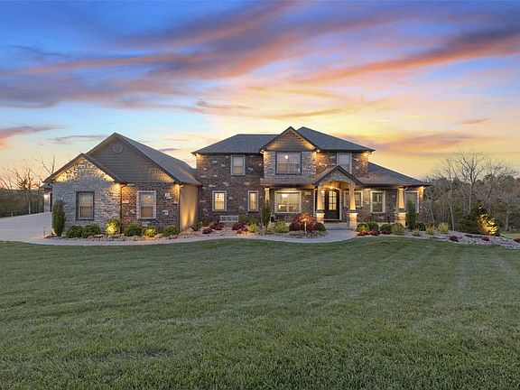 Check out this luxurious oasis in Festus. Situated on over 6 sprawling acres in R-7 schools. This home has 5 spacious bedrooms and 3.5 beautifully designed bathrooms. Master suite on the main level includes finished custom closet with oversized shower. This property also boasts an impressive 8-car garage, perfect for car enthusiasts, hosting events, or anyone who loves to have plenty of space for their extra toys! Underneath the detached garage includes another storage area with a ramp for ease of riding lawn mower or great space for future pool storage. Inside, you are greeted with the open floor plan that connects the living room, dining area, and kitchen, allowing the natural light to flow freely from one space to another. The living room is a perfect spot to relax and unwind, with its comfortable seating and a cozy fireplace, all bathed in the soft glow of sunlight. The kitchen is a chef's dream, with plenty of counter space, modern appliances, and a large window above the sink. Additional Rooms: Mud Room