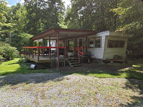 Easy distance to Weavers Falls, this little gem on 4.67 acres can be your little getaway from reality! Older style mobile home has extra large deck for outdoor enjoyments, loads of trees for privacy PLUS an oversized 2 car garage/pole barn to store all the toys! Small hunting stand in the back lends itself to some great archery hunting!
