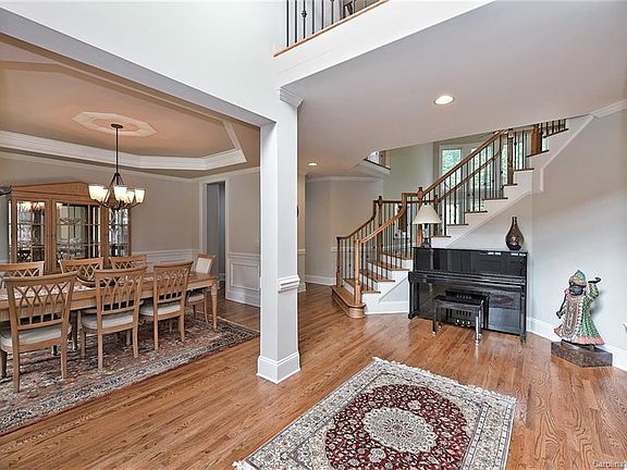 A rare find in the heart of Weddington with large ~0.5 Acre cul-de-sac lot backing to woods and creek. This 4-sided brick fully finished basement home is beautifully landscaped. You will be greeted by an amazing wrought iron circular stair case leading into a stunning 2-story Great Rm w/fireplace and sprawling tall windows overlooking the backyard. The large, custom designed kitchen is in the center of the house w/huge island, granite ctr tops, ss appliances, gas cooktop, hood and a walk in pantry. Off the kitchen is a reading/gathering nook and a large casual dining rm. Formal dining rm, living rm, guest suite w/full bath & walk in closet, lovely three season porch, and butler pantry complete the main level. Upper level boasts a large Master suite with attached sitting/craft room, 3 large secondary BRs and an office. Basement is fully finished with a large theater rm, game rm, half bath, large BR w/full bath & steam sauna, kitchen w/stove & microwave and plenty of room for storage.