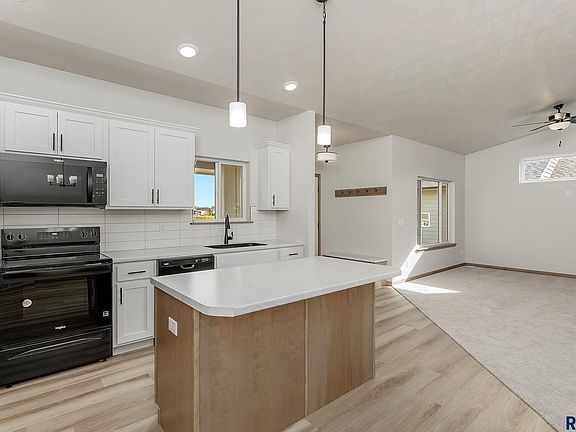 Large islandPantry cabinetOversized garageLaundry roomVaulted ceilingsLvp flooringTrey ceilings