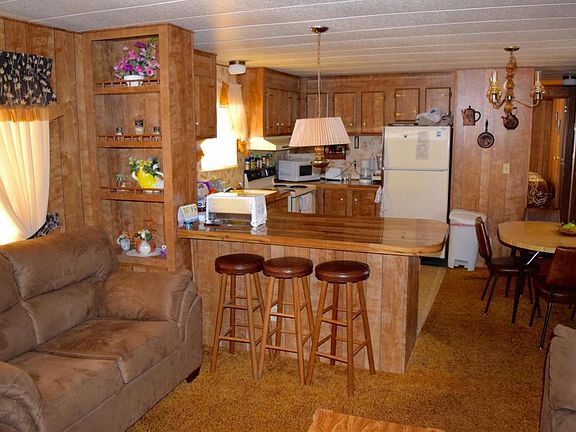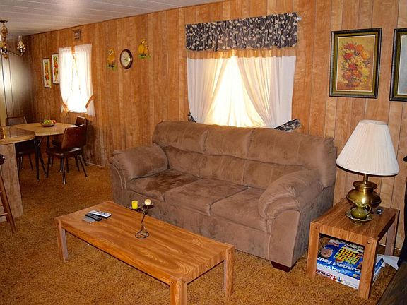 Fully furnished and move in ready. Split floor plan for privacy with a bedroom and bath on either end. Comfy open living area. Oversized covered deck that runs almost the length of the home for entertaining. More amenities include an attached storage shed and a partially fenced yard. Priced to sell!