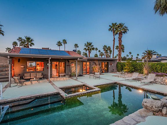 Off Hold... Seller is now finally able to select a buyer and proceed with sale. Lease extension will be paid by seller for another 25yrs in addition to the current remaining 18yrs. Expiration of lease land will now be year 18yrs + 25yrs = 2067. An exquisite estate in the heart of palm springs where celebrity clients have gathered for intimate evenings, palm springs film fests and holidays... 42 years of residency have been delightful for the current owner, but he is ready for the next chapter. This home features 3 bedrooms, 2 baths & 1,452sf of living plus an air conditioned 2-car garage, located one of the best-looking cul-de-sac's in Vista Norte. With tranquil mountain views from within the home and throughout the oversized serene backyard to enjoy the westerly plentiful sun and watching the sunsets behind the mountains. The home is located on a quiet neighborhood far enough from downtown, which is still nearby to destinations of shopping, dining and entertainment. A well-maintained home featuring a 2-car garage, 2 inverter solar systems of 9 panels & 27 panels. A saline pebble-tec finish pool & spa with newer equipment. Vaulted ceiling in the living room & dining room. Newer water-heater, furnace & AC.