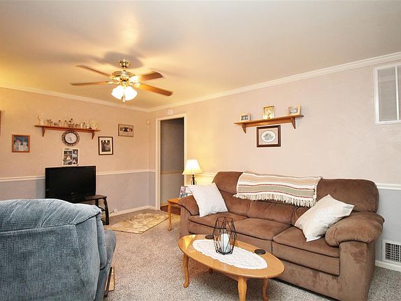 Nothing to do but unpack in the cozy ranch home! All of the big ticket items have been updated in recent years including roof shingles and decking, windows, 200 amp electric, additional attic insulation, living room carpet, kitchen and bathroom flooring, and tankless on-demand water heater! Large living room with lots of natural light, spacious kitchen comes with appliances. Plenty of space in the laundry room. Large back yard with privacy fence, 10x10 patio and storage shed with electricity. Don't pass up this affordable opportunity!!
