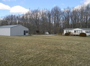 SITTING BACK IN A PRIVATE SETTING WITH WOODS IN YOUR BACK YARD AND OPEN PASTURES IN FRONT YARD. This 3BR 2BA 2700+SF ranch home on full basement w/lg. 30x48 polebarn/garage for all your hobbies is sitting on 10+acres w/mun. water. Home has full basement w/bar area and could be awesome greatroom area with walk-out. Home has new roof, new carpet and new deck built on west side and new deck the length of the house that is handicap accessible. This is a must see home.