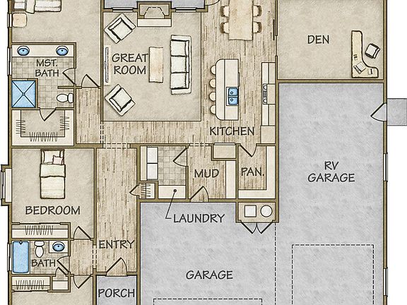 - Bath-Master, Bed-Master Main Level, Guest Room, Split Bedroom, Den/Office, Great Room, Rec/Bonus, Double Vanity, Central Vacuum Plumbed, Walk-In Closet(s), Pantry, Kitchen Island, Quartz Counters, Number of Baths Main Level: 2, Bonus Room Size: 17x12, Bonus Room Level: Main