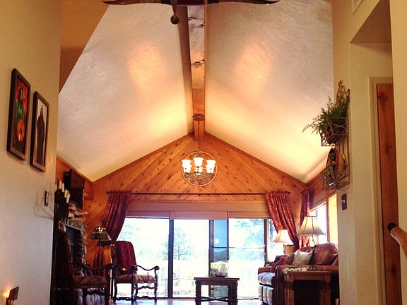 Amazing, well-kept home located in the beautiful pine trees of the desirable Timber Ridge neighborhood. The updated home features 1700 square feet with 3 bedrooms and 2 baths. The open floor plan with large sliding glass doors take advantage of the picturesque mountain views that are absolutely breathtaking. The skylights and solar tubes in the living areas add the perfect amount of natural light. One level living features an updated kitchen with newer appliances, granite counter tops, tile back splash and tile flooring. The warm family room features raised beamed ceiling, amazing fireplace, and the spectacular mountain views. The master bedroom rivals a five star resort suite with fireplace shared with a master bath featuring granite counter tops and a soaking tub.