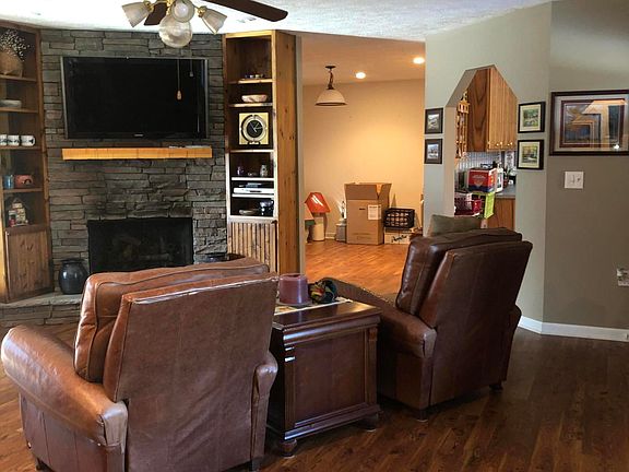 Nice brick ranch style home with 3 bedrooms with split bedroom design- large living room with cozy stone gas log fireplace- Beautiful 4- season sunroom with cathedral ceiling and wood beams- surrounded by windows on three sides. Spacious master bedroom with walk-in closet. Large kitchen with plenty of cabinets and counter top space, has a cute bay window for a breakfast table and then you have a formal dining room. X-Large 2 car garage and a storage shed in the back yard. Home is situated on a nice lot with wooden deck on back of home. The propane tank is used for the gas fireplace and 2 gas lines on the deck. **Washer and Dryer will stay with home if buyer wants. **
