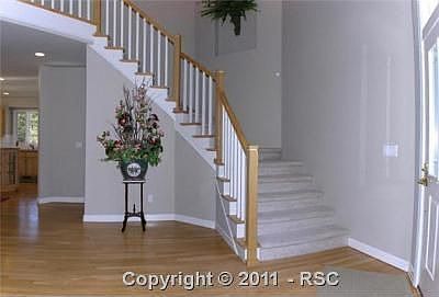 The setting will lovely home. At the end of a cul-de-sac, surrounded by large healtlhy trees, sits this beautiful home. Views of Pikes Peak from the Living Room, Dining Room, Breakfast Room and Master Suite will delight you. Privacy plus+++++ Wonderful floor plan a large room on main level that would be a perfect home office, sunroom or music room. Large kitchen with upgraded slab granite countertops and hardwood flooring. The entire upstairs is Master suite. A very large bedroom