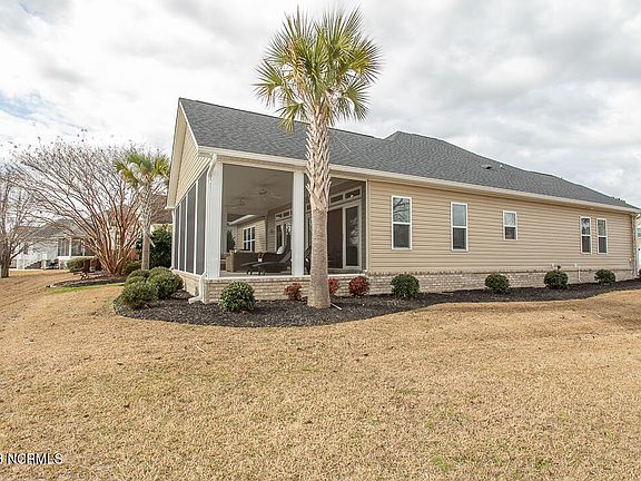 This exquisite home is located in the Premier Golf Community of Brunswick Plantation. Large entryway leads to open floor plan encompassing living room with fireplace, dining room and high end chefs kitchen with Wolff cooktop, quartz countertops, large island, and wine fridge . All opening out to large screened room with floor to ceiling screens which also leads to outdoor patio. The bedrooms are split with primary bedroom suite with walk-in closet and private bath. This has his&her walk in shower and double sinks. 2 guest bedrooms are located off the entry hallway. 4th bedroom is above garage with private full bath, closet and mini split heat/AC. 2 hallway light fixtures do not convey-they will be replaced. This home is on a cul-de-sac with beautiful pond view and view of the 6th hole on the Dogwood course. Home was built in 2020 and ready to go. This property is not located in flood zone.