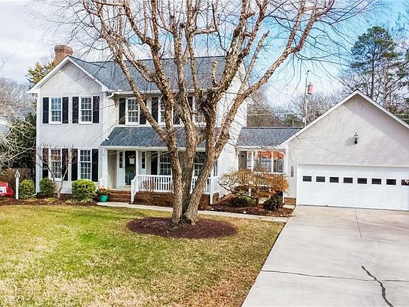 Beautiful, charming 3 bed/2.5 bath home in fabulous Burlington location! This home is a true treasure, boasting FABULOUS curb appeal & located just 5 mins from downtown! HWs & tile throughout, w HWs on main just refinished. Rocking chair front porch offers view of gorgeous Lamb's Lake right across the street! Main level houses living rm w brick-surr wood burning FP; dining w chair rail CM; kitchen w w-in pantry AND w-in storage as well as separate tile bar w glass front cabinetry; bright & beautiful sunroom w cathedral ceiling & door to office; 1/2 bath & laundry! All BRs on 2nd, including spacious primary w WIC w built-ins & en-suite tile bath, & BRs 2/3 just steps from tile hall bath. Expansive, flat, fenced BY w brick paver patio offers incredible outdoor living! Adorable breezeway connects the home to the 2-car garage, offering workbench w pegboard & shelving as well as 16'x10' heated/cooled storage room. Don't let this opportunity pass you by - schedule your showing today!!