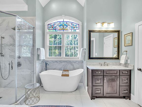 • Bathtub/Shower Combination, Beamed Ceilings, Bookcases, Built-in Features, Pantry, Cathedral Ceiling(s), Ceiling Fan(s), Central Vacuum Prewired, Chandelier, Coffered Ceiling(s), Crown Molding, Double Vanity, Eat-in Kitchen, Entrance Foyer, High Ceilings, High Speed Internet, Kitchen Island, Low Flow Plumbing Fixtures, Open Floorplan, Master Downstairs, Recessed Lighting, Separate Shower, Smart Light(s), Smart Thermostat, Smooth Ceilings, Sound System, Tray Ceiling(s), Walk-In Closet(s), Walk-In Shower, Water Closet