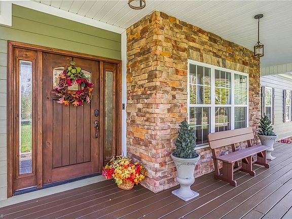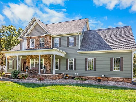Experience refined country living in this exceptional 3-bedroom, 2.5-bath home with a spacious bonus room, nestled on 1.96+/- pristine acres. Step inside to a grand living room boasting soaring 18’ ceilings and a stunning dry stack stone fireplace—an elegant focal point in this open, light-filled space. Gleaming refinished hardwood floors flow throughout, leading to a gourmet kitchen with a walk-in pantry. Make your way to the covered composite deck overlooking the beautiful pond while you unwind in the hot tub. The luxurious primary suite offers a spa-like soaking tub and serene retreat. Impressive upgrades include a new roof (2025), upstairs HVAC and generator (both under warranty), a 36x56 detached garage with full bath and hybrid heat pump—ideal for the hobbyist or collector. A 12x16 storage building adds even more convenience and storage. This meticulously maintained property blends elegance, comfort, and craftsmanship Professional pictures coming soon.