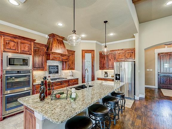 Country Setting on 2.31 Acres & Mature Trees! Fully Fenced with Automatic Gate, Open Concept 4-3-3, Luxurious Master Bdrm Suite, Walk-in Shower, Garden Tub, Huge Closet.3 Downstairs Split Bdrms. Downstairs Living & Upstairs Gameroom with 1 Bedroom & Bath. Modern Contemporary Kitchen with Breakfast Bar & Island, Large Walk-in Pantry with Frosted Glass Door, Whirlpool Gold SS Appliances, Upgraded 5 Burner Propane Cook-top, Built-in Microwave & Double Oven with Top Convection. Huge Breakfast Bar Open to Living Space & Dining Area. Wood Plantation Shutters, Hand-scraped Hardwood Floors in Entry, Study, Living Room & Hallway. Rich Upgrades:Low E-windows, Fully Foam Encapsulation,2 HVAC Units.See Media for Upgrades.
