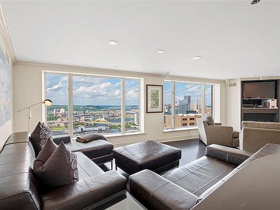 Move-in ready Mt Washington condo with views of the city skyline, all 3 rivers and 2 stadiums. Custom tile entry leads to open concept living, dining, and kitchen with hardwood floors. Main suite includes large bathroom with jet tub. Main bedroom has 3 closets. Ample closet space throughout home with additional storage in basement. All new stainless steel kitchen appliances and stackable washer/dryer in 2020. New HVAC 2018. New hot water heater 2011. Includes furniture, TVs, stereo/video (excludes antique dresser in guest room, sports memorabilia, wall art). Secure building with intercom system and elevator to all levels. 2 assigned parking spaces on lobby level. This is a 2nd residence & very lightly used the past 13 years.