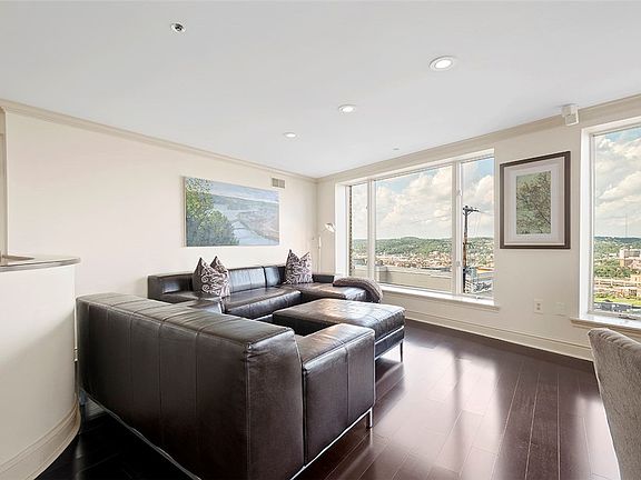 Move-in ready Mt Washington condo with views of the city skyline, all 3 rivers and 2 stadiums. Custom tile entry leads to open concept living, dining, and kitchen with hardwood floors. Main suite includes large bathroom with jet tub. Main bedroom has 3 closets. Ample closet space throughout home with additional storage in basement. All new stainless steel kitchen appliances and stackable washer/dryer in 2020. New HVAC 2018. New hot water heater 2011. Includes furniture, TVs, stereo/video (excludes antique dresser in guest room, sports memorabilia, wall art). Secure building with intercom system and elevator to all levels. 2 assigned parking spaces on lobby level. This is a 2nd residence & very lightly used the past 13 years.
