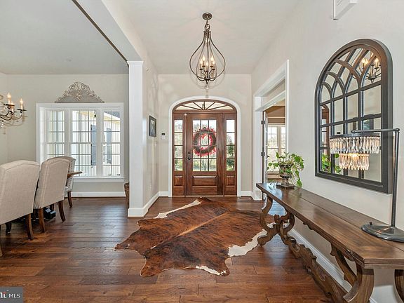 This home is the winner of the 2019 Custom Home Build Award of Excellence from the Frederick County Building Industry Association! This like new- only 5 years young stunner is situated on over 4 acres and has over 3000 finished square feet above the basement! Enter from the covered front porch through the custom mahogany front door into the large foyer and look ahead to the expansive family room that features a dramatic vaulted ceiling. Also opening off the foyer are the executive office with beautiful views and the formal dining room. The stunning French Country style kitchen features granite countertops with natural stone backsplash, beautiful white cabinetry, an island, stainless appliances, large pantry, and breakfast area. Off the breakfast nook is a cozy keeping room with a tray ceiling and wood burning fireplace. To the rear is a beautiful all-season room that is perfect for watching wildlife and leads to a beautiful and private outdoor natural stone patio. The spacious main level primary suite has a tray ceiling and includes a large walk-in closet. The owner’s bathroom has a large natural stone shower with seat and body sprays and granite countertops. You will also find two additional bedrooms which share a Jack and Jill bathroom. The laundry room is located just off the kitchen and there is a first-floor powder room. There is an abundance of space in the massive unfinished walk-out basement with high ceilings Additional features include unique light fixtures, beautiful large plank hardwood floors, interior French doors, extra large garage door to easily accommodate two vehicles, energy efficient insulation package, professionally landscaped lot, and a close proximity to the Monocacy River! Also, holiday lighting for the front of the home can be easily operated by one switch! Do not miss this magnificent and wonderfully exciting home!