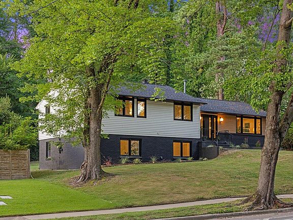 Welcome home to this meticulously designed masterpiece in the highly sought-after Eastgate subdivision (Right by North Hills).    This completely renovated home has everything you could dream of and every color, fixture, and piece of trim has been carefully hand-selected. As you step through the front door you're greeted by a large open-concept living area with newly refinished hardwoods, brand-new windows throughout, and a jaw-dropping kitchen. In the kitchen, you'll find dual-tone and soft-close cabinets, a waterfall kitchen island spanning over eight feet, a custom hood, a large picture frame window over your new farmhouse sink, and marble countertops that extend to the backsplash. On the upper level, you'll find four bedrooms, including the master, and two full bathrooms. In the master bedroom, you'll see two elegant hanging pendant lights and custom wood accent paneling from the wall to the ceiling. In both bathrooms, you'll find high-end tiles selections, new vanities, new toilets, and modern light fixtures.     Moving downstairs, you'll find a second living area ''color-drenched'' in a moody dark paint color, sconce lights and built-in shelves around the fireplace, and a bar area with marble countertops and beverage cooler. But that's not all! Your dream laundry room also awaits with cabinetry, floating shelves, more marble counters, a wash sink, and plenty of room for additional storage. Last but not least, you have your third full bathroom and an additional 5th bedroom/office hideaway. Step outside either of the new sliding glass doors to an upper-level deck and a lower-level patio perfect for hosting friends and family. This home was truly renovated from top to bottom, and is ready to move in. Plus, Roof & Hvac are both brand new giving you even further peace of mind with making this property your new oasis.     This home is located less than a mile from North Hills and within walking distance to East Gate Park. You'll find the perfect combination of privacy and convenience at 1105 Hardimont road with access to shops, restaurants, and activities.     Don't miss out on this one of kind home, in one of the most popular areas of the triangle!