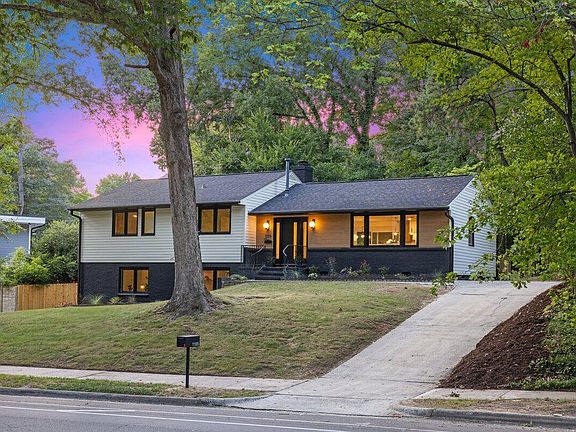 Welcome home to this meticulously designed masterpiece in the highly sought-after Eastgate subdivision (Right by North Hills). This completely renovated home has everything you could dream of and every color, fixture, and piece of trim has been carefully hand-selected. As you step through the front door you're greeted by a large open-concept living area with newly refinished hardwoods, brand-new windows throughout, and a jaw-dropping kitchen. In the kitchen, you'll find dual-tone and soft-close cabinets, a waterfall kitchen island spanning over eight feet, a custom hood, a large picture frame window over your new farmhouse sink, and marble countertops that extend to the backsplash. On the upper level, you'll find four bedrooms, including the master, and two full bathrooms. In the master bedroom, you'll see two elegant hanging pendant lights and custom wood accent paneling from the wall to the ceiling. In both bathrooms, you'll find high-end tiles selections, new vanities, new toilets, and modern light fixtures. Moving downstairs, you'll find a second living area ''color-drenched'' in a moody dark paint color, sconce lights and built-in shelves around the fireplace, and a bar area with marble countertops and beverage cooler. But that's not all! Your dream laundry room also awaits with cabinetry, floating shelves, more marble counters, a wash sink, and plenty of room for additional storage. Last but not least, you have your third full bathroom and an additional 5th bedroom/office hideaway. Step outside either of the new sliding glass doors to an upper-level deck and a lower-level patio perfect for hosting friends and family. This home was truly renovated from top to bottom, and is ready to move in. Plus, Roof & Hvac are both brand new giving you even further peace of mind with making this property your new oasis. This home is located less than a mile from North Hills and within walking distance to East Gate Park. You'll find the perfect combination of privacy and convenience at 1105 Hardimont road with access to shops, restaurants, and activities. Don't miss out on this one of kind home, in one of the most popular areas of the triangle!