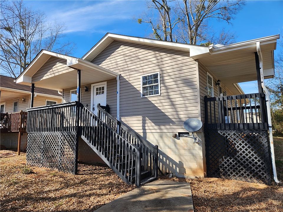 Welcome home to this Charming and affordable, 3-bedroom, 2-bath house with just under 1100 sq ft of living space. This single story home at 1105 Jones Ave., has all the rooms on one level, however the home is elevated where you walk-up a flight of stairs to enter. Enjoy the view and your morning cup of coffee from the front porch. The front door opens to the great room where the windows let in lots of light. The great room adjoins the kitchen and dining nook in this semi-open flooplan. Down at the end of the hall, find the primary bedroom with its own bathroom and walk-in closet. The two additional bedrooms are across the hall and share a bathroom. The current owners have made some recent updates such as; new flooring, new paint, new kitchen countertops and cabinets as well as a new stove, new built-in microwave, new dishwasher and new dryer machine. The kitchen cabinets and counters are natural and unfinished, and are a blank slate for the new buyer and Chef of the house who can choose their own cabinet stain, backsplash and finishes to complete to their liking after they close. Right off the kitchen is the dining nook and utility closet with laundry area as well as a second porch, which could easily be screened. Parking for 2-3 cars is uncovered and off the right side of the house and there is a storage shed in the back. The Back yard or side yard could be fenced for your pets. This is a very convenient location just 1 mile, and a short 4 minute drive from downtown Seneca and Ram Cat Alley where you can enjoy lots of shopping, dining and event venues, such as Jazz on The Alley, The City of Seneca 4th of July Celebrations and a fantastic Christmas Parade and lights display. This location is also near to several churches and the Senior Solutions building which provides Senior Support Services in the area, such as rides to Dr's appointments, shopping. daycare and meals on wheels. Oconee County is known for it's natural beauty, but is also known for having great schools with access to an open enrollment policy for the school system with applications accepted as space allows. Oconee County also offers wonderful public access to two beautiful Lakes; Lakes Keowee and Lake Hartwell with boat launch sites at South Cove Park and Keowee Marina just a 10-15 minute drive. So much here to love. Finally an affordable home with many updates! Hurry on this one!