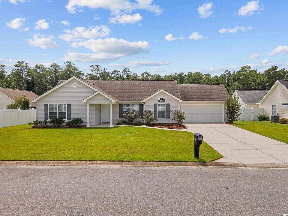Looking for a fantastic starter home or a home within the highly sought after St. James School district? Then look no further! This quaint 4 bedroom, 2 bath home in 'Wooded Acres' Subdivision has great curb appeal and is just waiting for somebody to add their personal touch. As you enter through the front door, you arrive in the living area, featuring vaulted ceilings and an open floor plan. Over to the left of the living area you will arrive at the hall way, leading to the laundry area, two bedrooms, the family bathroom and finally the master bedroom. The master features; tray ceilings, a walk in closet and of course, master bathroom. To the rear of the living area you enter into the dining/kitchen area containing lots of natural light from the sliding patio door. Off of the kitchen is the fourth bedroom which could also be purposed as an office or formal dining. From this point is also access to the attached, 2 car garage. The exterior is very low maintenance featuring a 6ft privacy fence in the back yard, irrigation system and outdoor storage area. Located within a stones throw to St. James schools, there are also many restaurants, stores and the beautiful Grand Strand beaches just minutes away! Schedule your showing today! All measurements and square footage are approximate and not guaranteed. Buyer responsible for verification.