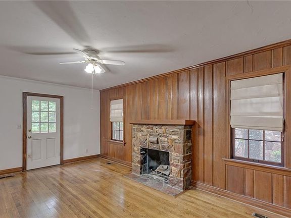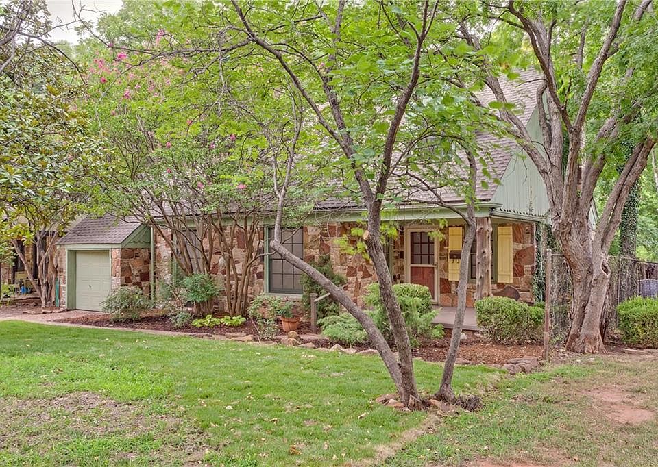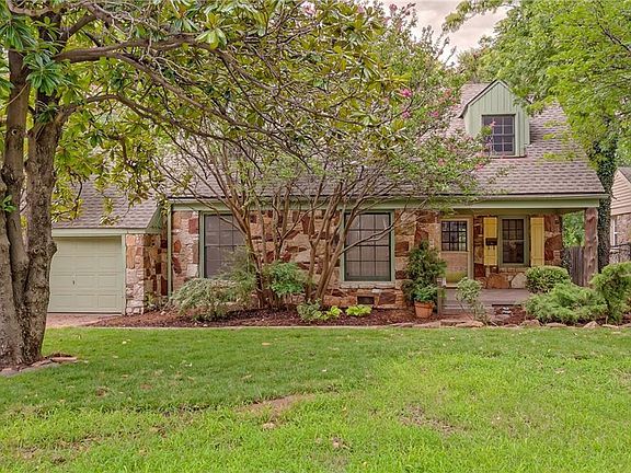 Lovely four bedroom home in historic Brookhaven addition. Charming stone home backing up to deep fork creek. Two bedrooms down, master and one additional bedroom bedroom up. The second floor could be a spacious master suite with a sitting room or office. Gleaming refinished hardwood floors accent this beautiful home. Open formal living and dining areas showcasing a petrified wood surrounded fire place original to the home. Fish from your own private fishing platform and enjoy relaxing in your park-like backyard. Zoned heat and air close to Classen Curve and all the wonderful restaurants located in the area.