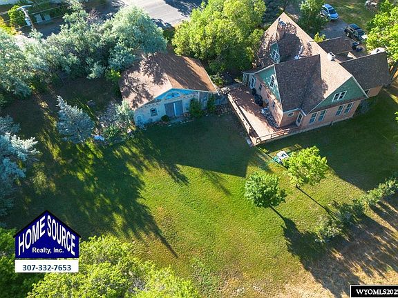 One of Lander’s most loved and iconic homes has hit the market! This stately residence boasts 3,355 sq ft and is situated on an exceptionally beautiful and large 3/4 acre lot, lined with privacy shrubs and mature trees. One of the most notable features from the curb is the stunning brick exterior and steep pitched roof, distinguishing its prominence and giving it a timeless appeal. Stepping inside you'll see the generous living space throughout, all with large windows, and notable features including attractive sunroom, numerous solid oak doors/mouldings and banister, charming built-ins, cozy crannies, stylish wallpaper, angled ceilings and built-ins. You'll love the three fireplaces, all with brick hearths, especially throughout the changing seasons, and there's several covered entry porches that are signature to the era of home and great places to store your coats/gear. The effective age for all plumbing and electrical is late 1970s to early 1980s, when the home was renovated from the studs-in. The purchase price includes a brand-new roof for the full house, disbursed as a credit so you can pick your colors and roof-type of choice. There's room for everyone and everything including: two large main-level family rooms, large kitchen with ample counter and cabinet space, walk-in pantry, elegant and spacious dining area, 4 bedrooms/2 bathrooms plus an office. In this home there's comfortable space for a homeschool room, home office, recreation and tv den, room to spread out, but also the type of living space to gather a houseful of extended family and friends together. The home is comfortably and efficiently heated with a gas furnace on the main-level, electric baseboard on the upper level, plus the three wood fireplaces. The home is sprawling yet comfy, welcoming and homey, and exceptionally versatile in its use of space. Calling artists, hobbyists and gardeners, this home has several exterior perks including a private well for plant and yard watering (automatic sprinkler in front yard only), stone patios, numerous garden areas and sweet shaded spots to hide away. The impressive 36'x24' finished, 3+ car garage detached garage is a rare-find outbuilding, especially in town. This home is the perfect place to settle in and establish roots in Lander, with room to grow into it, make it your own, and love every bit of its established history in Lander. Call today to see this timeless, traditional, all above-grade (no basement), rich with history, and wealthy with space, Lander house!