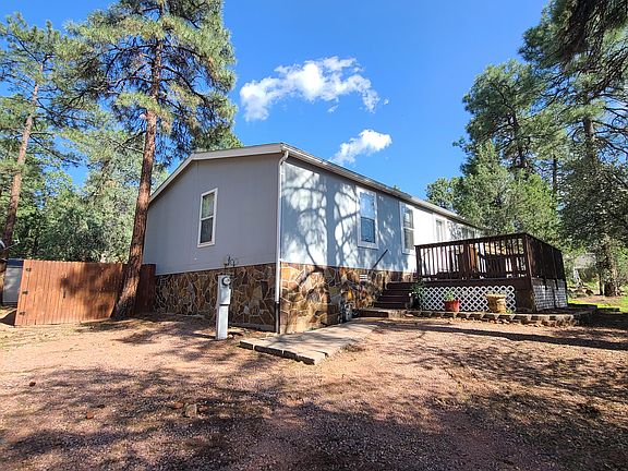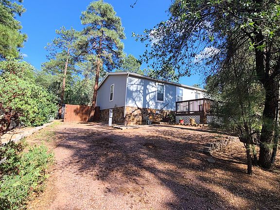 Come enjoy our four, mild, seasons and fresh mountain air in the beautiful Rim Country!This well maintained/updated 2 bedroom 2 bath, 2004 Palm Harbor home on a great treed lot in the heart of AZ is a must see.Sit on your front or back deck and enjoy the gentle breeze through the Pine trees.Fully fenced back yard is a great place for you and your four legged family to create life long memories. The interior offers a spacious living room-dining combo.Large kitchen with tons of counter space and cabinets. Large utility room. and two full bathrooms.The heavily treed lot gives you the feeling of remote country living yet it is walking distance to shopping and restaurants.Primary/Second Home/AirBNB/VRBO all ok!Call to schedule your showing today!
