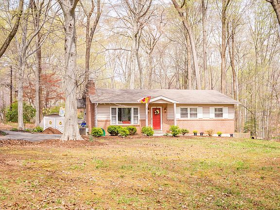 Charming rancher with inviting, open floor plan nestled on an almost half acre wooded lot just outside Bel Air town limits and in the sweet spot between Bel Air and Fallston, just minutes from Winters Run Golf Club, Ma & Pa Heritage Trail, Harford County Farm Fair, shopping, dining and entertainment. Large window floods the family room with natural light while wood beamed cathedral ceilings and fireplace with wood burning stove lend character to the space. Gleaming hardwoods create a cohesive feel between the family and dining rooms and carry through to bedrooms. Full basement offers potential for ample storage and future expansion. Enjoy the tranquility of nature views and wildlife watching from the wrap around windows of the light-filled sunroom with vaulted ceilings, skylights and sliding glass door that leads to private patio with fenced in yard space. Welcome home!