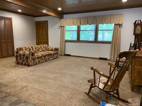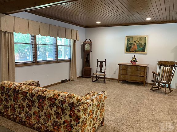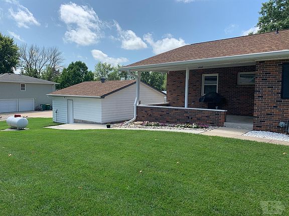 This ranch style brick home is located on large corner lot with beautiful established yard, detached double car garage with work space and covered parking, and large metal shed with 10' ht door. The impressive with open floor plan to Living, Dining, Kitchen and Family Room with a wood burning fireplace that can be enjoyed from every room! Bedrooms (3) have double closets with additional storage closets located throughout the home. The fully finished lower level has (2) additional non-conforming bedrooms with large windows, full bathroom, large family room, tornado shelter and large storage area with built-in workbench. Two laundry hook-ups in this home, one in bedroom on main level and one in basement that already has laundry sink. The basement has exit stairs to upper attached (2) car garage and additional work space/storage at end of garage. Culligan water system included. You have to see to appreciate the amenities and attention to details' given this home.